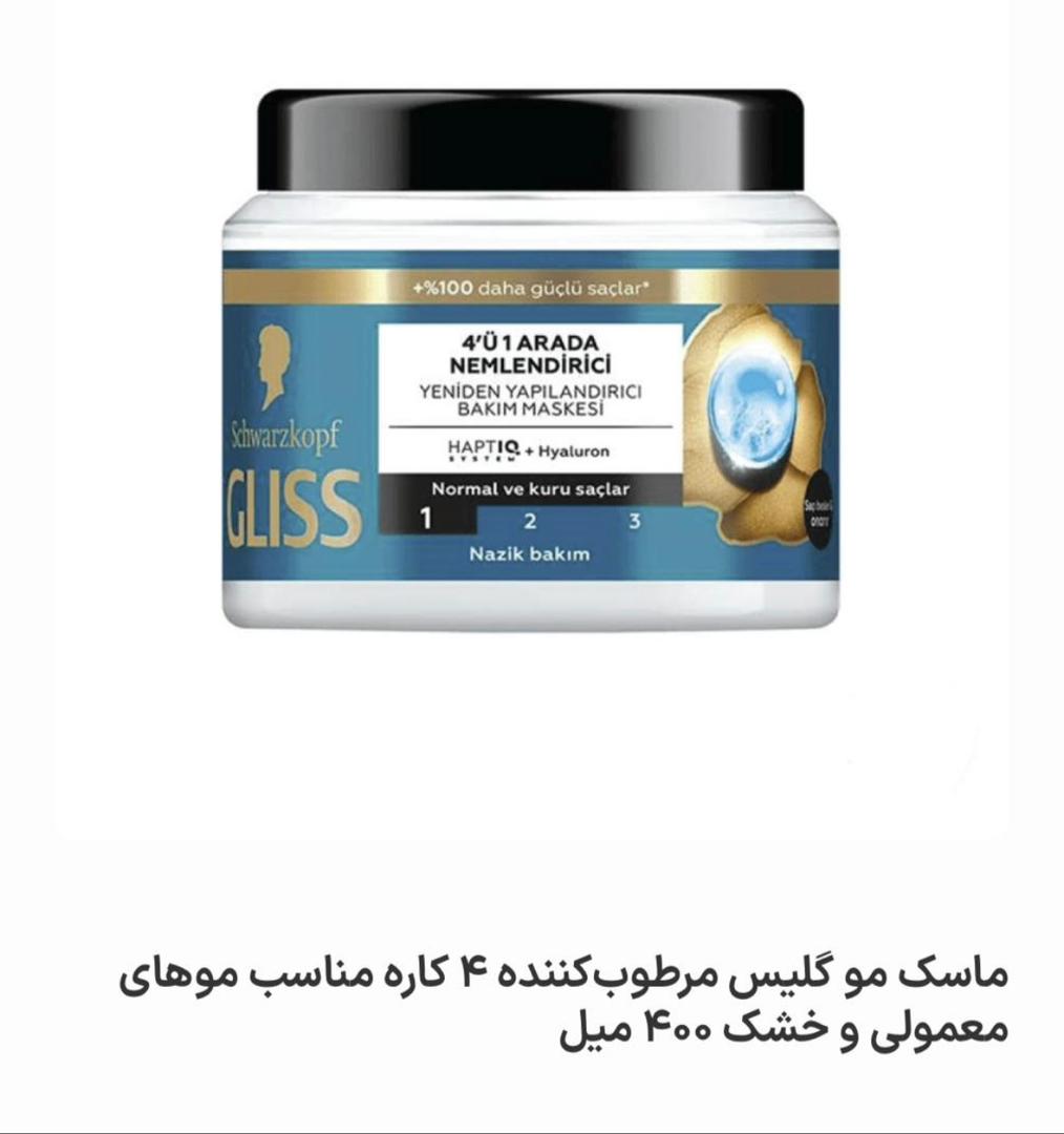 با ماسک مو 4 در 1 مرطوب کننده GLISS، موهای معمولی خود را به سطحی جدید از نرمی و درخشندگی برسانید! این محصول شگفتانگیز، با فرمولاسیون تغذیهکننده و مرطوبکننده، موها را تقویت کرده و از آسیبهای محیطی محافظت میکند. تجربهای بینظیر از لطافت و سلامتی را به موهای خود هدیه دهید!